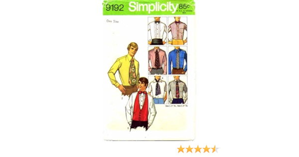 Amazon Com Simplicity 9192 Sewing Pattern Mens Accessory Package Bow Ties Ascot Cummerbund Vest Arts Crafts Sewing